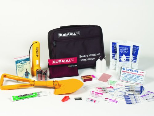 SUBARU SEVERE WEATHER COMPANION AID, INCLUDES SHOVEL, FLARES, PONCHO,MATCHES,WATER, 1ST AID KIT, FLASHLIGHTS. FOR THE JUST IN CASE YOU GET STRANDED